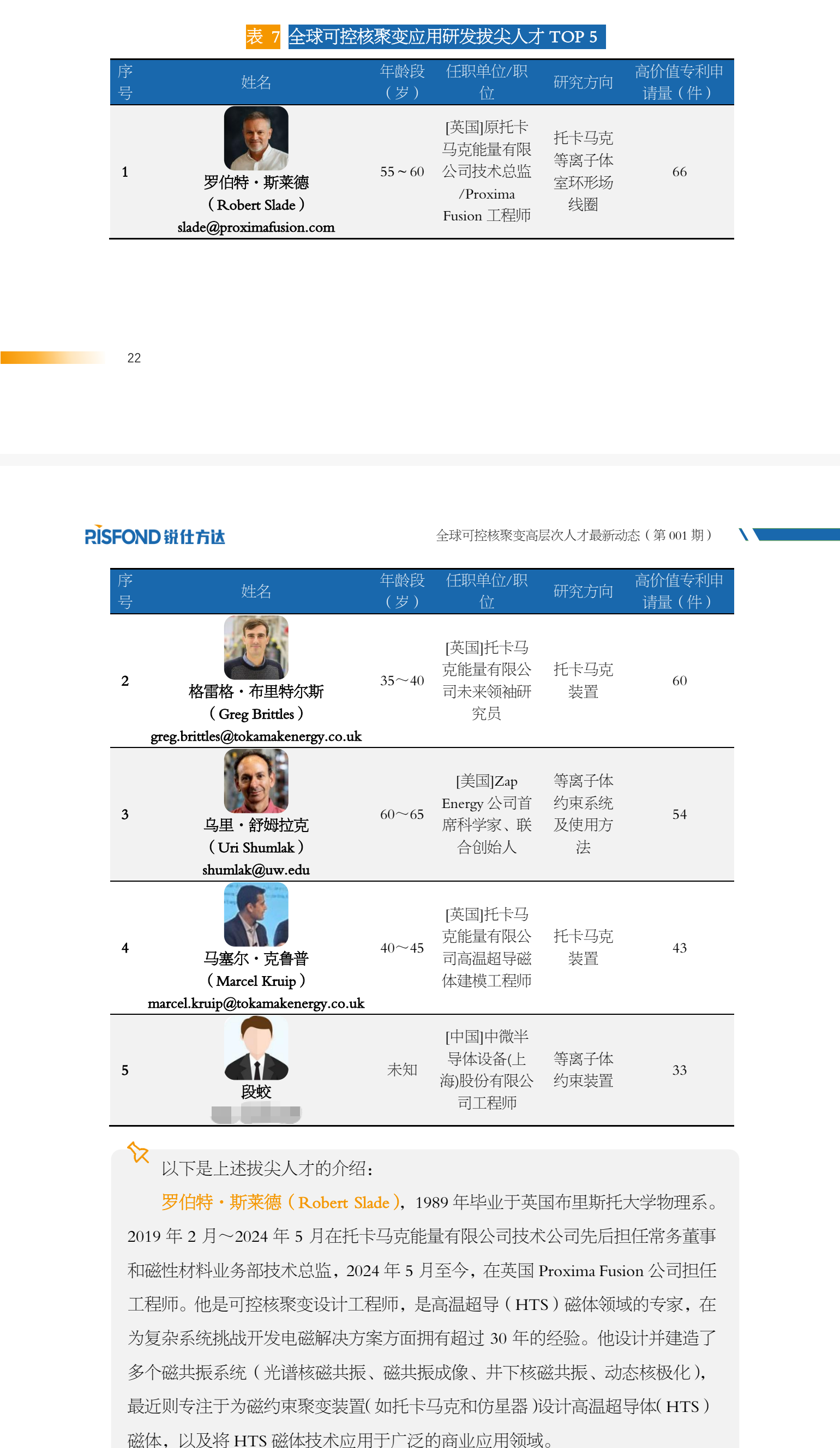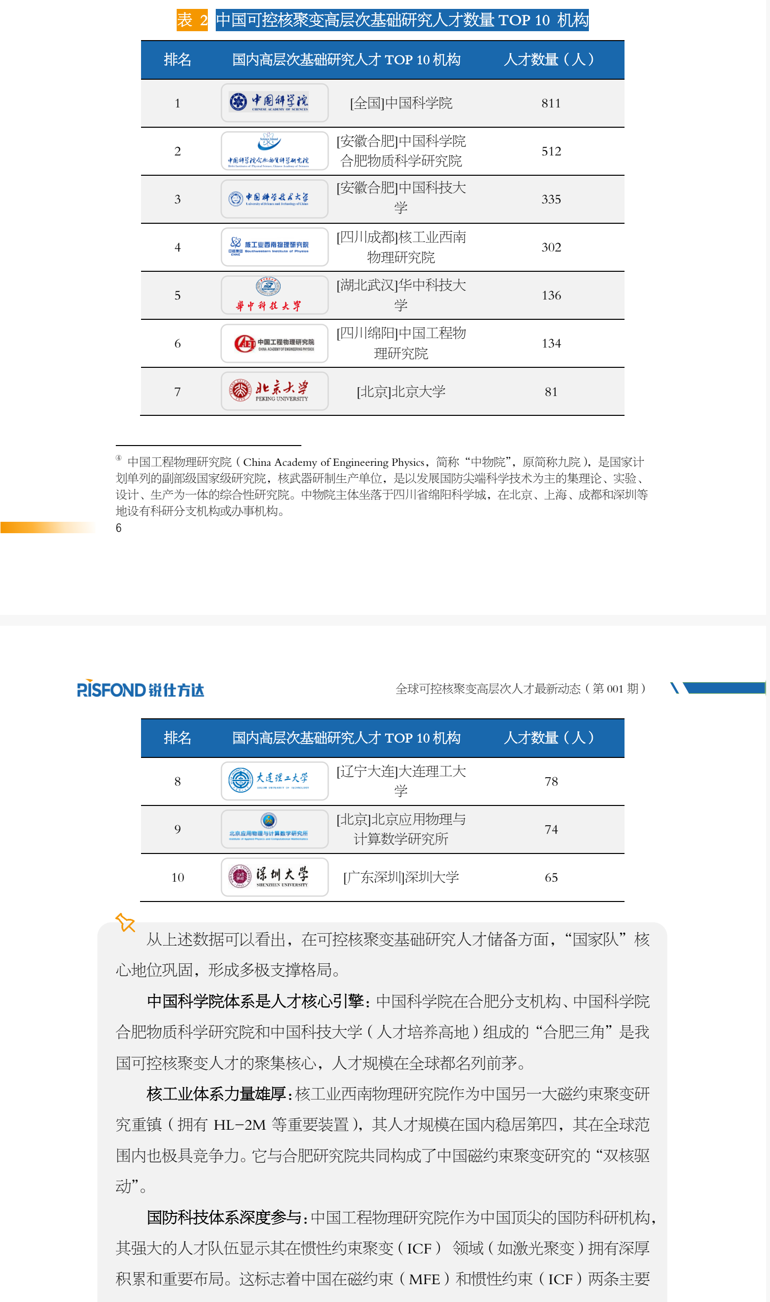 本报告将可控核聚变人才分为基础研究人才和应用研发人才,前 者输出科研成果的方式主要是学术论文,内容以基础研究为主;后者主要是发明 专利,内容以应用研发为主。报告以高层次人才为分析对象。