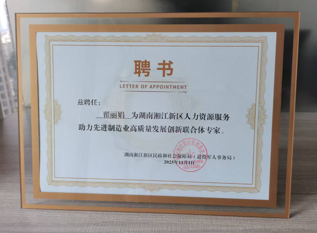 锐仕方达长沙分公司总经理翟丽娟女士,荣获《湖南湘江新区人力资源服务助力先进制造业高质量发展创新联合体专家》称号 。