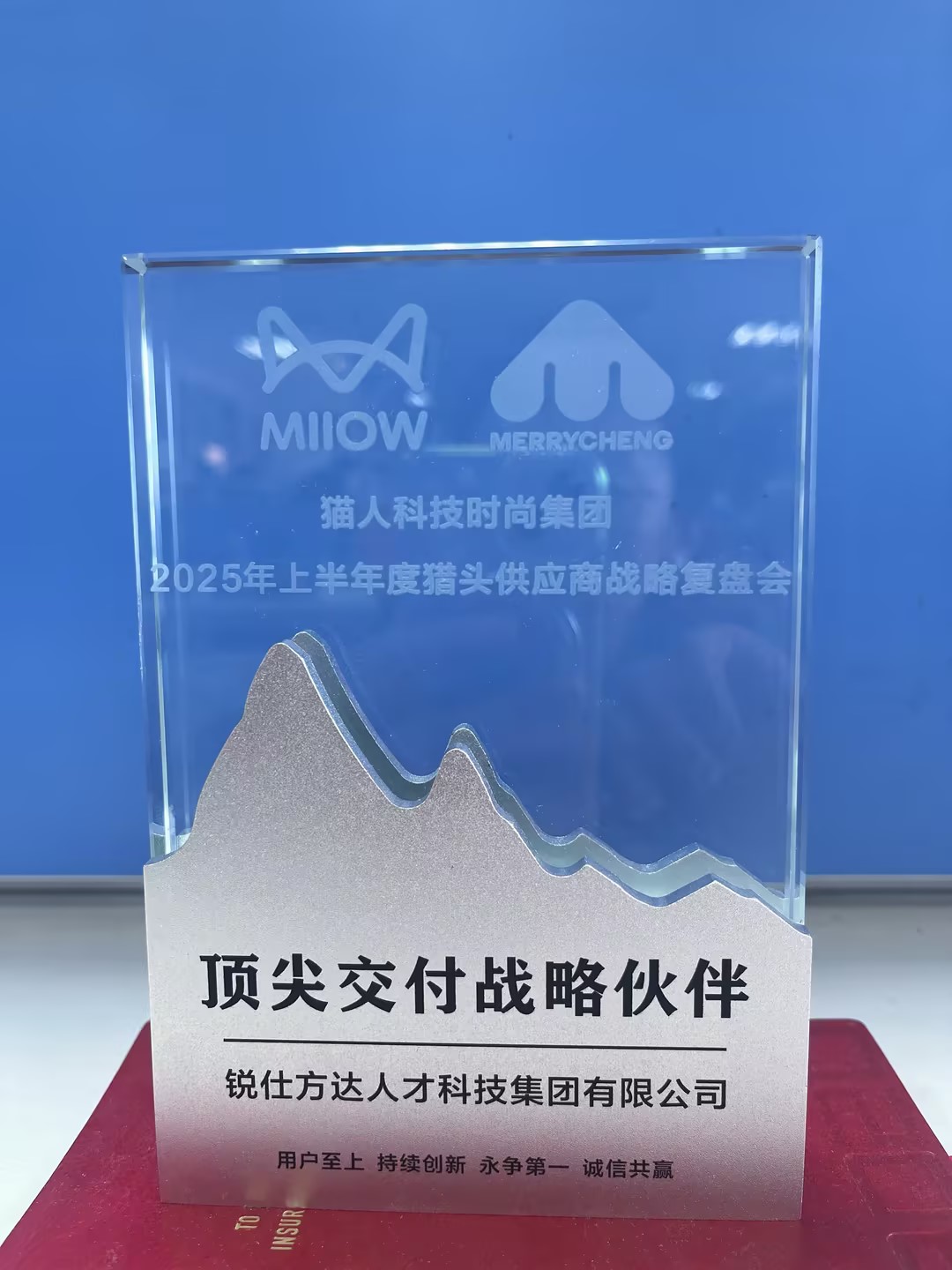 近日,猫人科技时尚集团2025年上半年度猎头供应商战略复盘会在杭州举行,锐仕方达凭借出色的交付成绩获猫人科技时尚集团2025年上半年度“顶尖交付战略伙伴”荣誉。锐仕方达上海闵行负责人祝楠楠代表公司出席会议并领取奖牌。