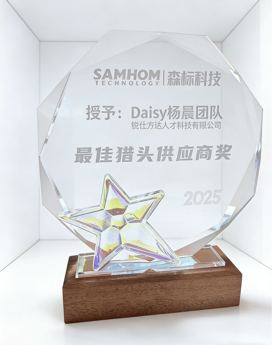 2026年2月,锐仕方达荣获江苏森标科技2025年度“最佳猎头供应商”称号。2025年,由王栋带领的镇江公司与其合伙人杨晨负责的交付团队紧密协作,共同为江苏森标科技引进大量急需的核心人才。镇江公司长期深耕高科技与智能制造领域,其行业专注力与团队高效交付能力,有力支持了客户企业的战略发展与人才布局。