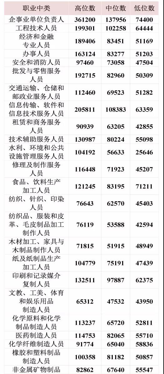 本调查的职业按《中华人民共和国职业分类大典(2015年版)》的职业中类划分。示范区制造业企业市场工资价位数据指从业人员在2020年取得的全部工资性收入,包括基本工资、奖金、津贴、补贴、加班工资等。将每个从业人员的工资水平从高到低排序,处于90%位置的从业人员工资为高位数,处于50%位置的为中位数,处于10%位置的为低位数。