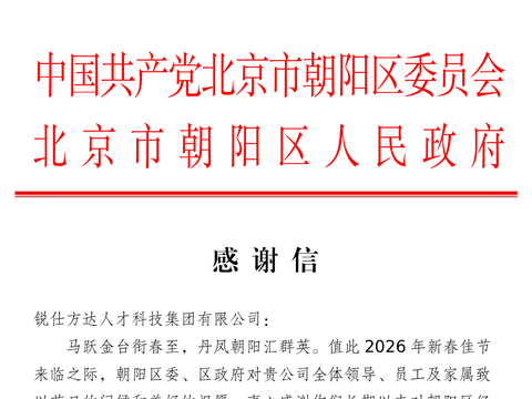 2026年02月13日,锐仕方达集团总部收到来自北京市朝阳区区委、区人民政府的来信!作为全国猎头行业头部公司,锐仕方达十年如一日扎根朝阳,一心谋发展,致力于为高成长型高科技型企业提供各类别高端稀缺人才 ...