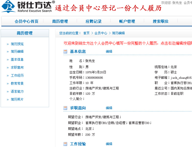 登记简历
